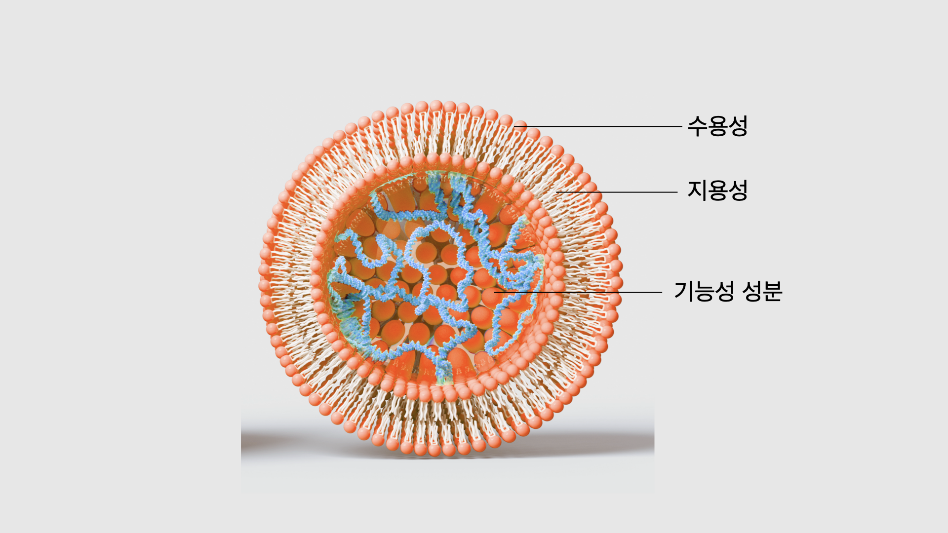 리포좀(liposome) 제형은 활성 성분을 인지질로 둘러싸 캡슐화한 구조입니다. 인지질은 세포막과 유사한 구조로, 활성 성분이 체내에서 더 효과적으로 흡수되도록 돕습니다.